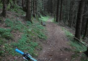 Auf 200 Höhenmetern lassen sich erste Eindrücke vom Fahren auf Single Trails sammeln. Am Anfang gehts mittelsteil unter der Tauernbahn durch - danach mit gutem Flow sehr spaßig durch den Wald. Am Schluss wirds kurz nochmal etwas technischer, bevor sich beim Verlassen des Trails der Puls langsam wieder senkt.