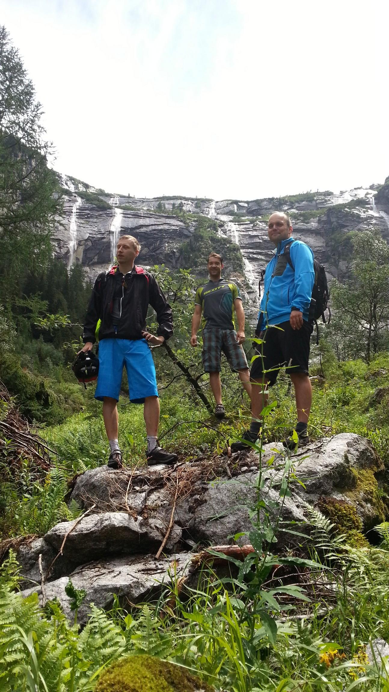 Wir radeln heute jedoch taleinwärts weiter, bis wir nach etwa einer Stunde und knappen 300 Höhenmetern beim Alpenhaus Prossau ankommen. Bevor wir uns hier die wohlverdiente Pause gönnen, wartet noch ein weiterer Höhepunkt unserer Tour auf uns - die sogenannten Bärenfälle. Wir müssen noch circa 30 Mintuten leichte Wanderung überwinden, doch dann eröffnet sich vor uns der Blick auf die spektakulären Wasserfälle in der hinteren Prossau.