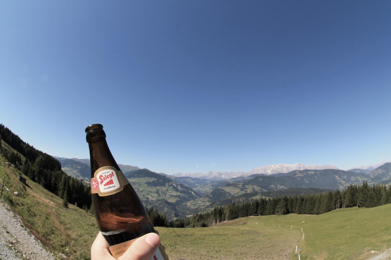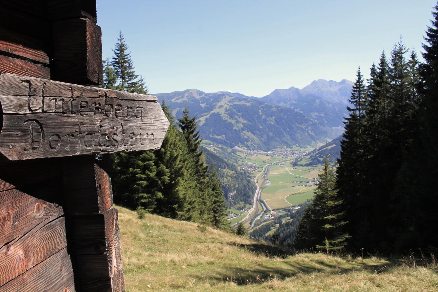 Wir machen uns heute mit dem Mountainbike auf den Weg dorthin. Ausgehend vom Tourismusbüro in Dorfgastein radeln wir in Richtung Unterberg. Dort folgen wir der Beschilderung aufwärts - und radeln etwa 500 Höhenmeter entlang der Forststraße bergauf.