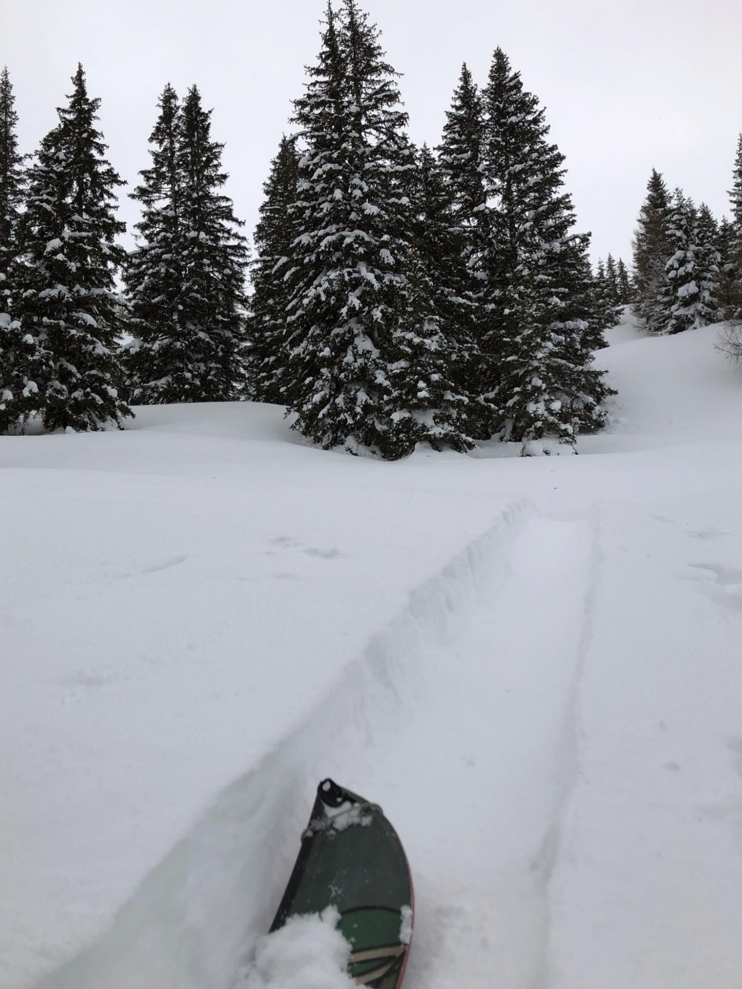 Wir haben für heute genug und fahren über die freien Hänge unter den Almen ab. Weiter unter folgen wir den Forstwegen talauswärts wieder zurück ins Angertal.